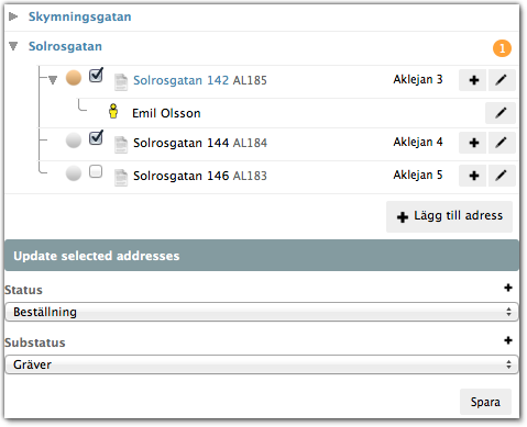 Ny funktion 2014-09-02, nu kan man redigera status för flera adresser samtidigt i Anslutamotorn
