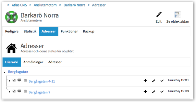 Atlas CMS > Anslutamotorn > Lista > Aktuellt område > Adresser