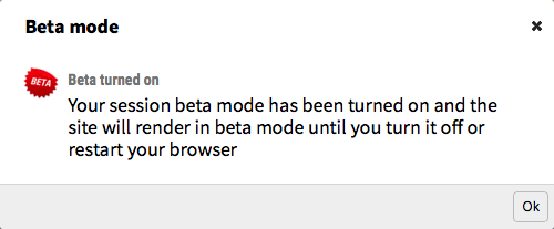 Ibland så lanserar vi nya funktioner i ett så kallat "betaläge". Det betyder att sidans funktionalitet inte förändras annat än om man sätter sig själv i beta-läge. Detta är ett läge som enbart påverkar dig själv och inte övriga besökare.