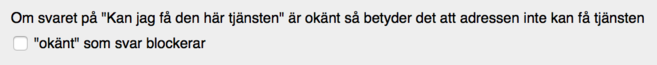 När en kund finns med i Marknadsdatabasen men har ett framtida datum så får dom ett meddelande att försöka igen senare. Via meddelandefunktionen kan man numera redigera det här svaret samt avgöra huruvida slutkunden kan slutföra sin beställningen"Okänt" status