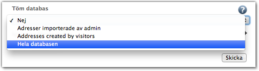 Sedan vid importen så har ni möjlighet att tömma databasen med bara admin-data, besöks-data eller hela databasen.