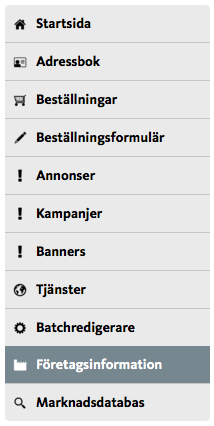 Företagsinformationen (Stadsnätportalen > För medlemmar > Företagsinformation) är obligatorisk och vissa delar av den visas i samband med dina tjänster.