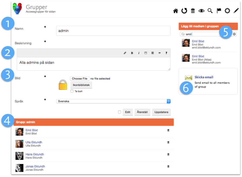 Klicka på en grupp för att se info och kunna redigera gruppen