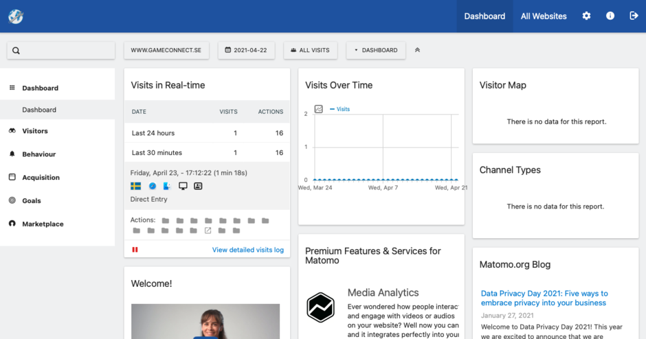 Matomo har ett gränssnitt och funktionalitet som påminner om Google Analytics, och har möjlighet till analys av era besökare utefter många olika parametrar.