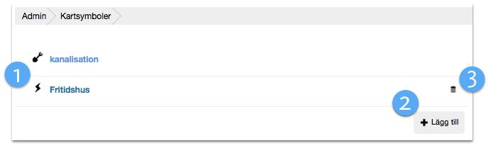 OBS! Om en adress har flera nyckelord kopplade till olika symboler använd endast det sista nyckelordets symbol. Ex: kanalisation,fritidshus