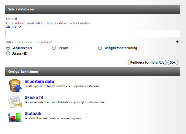 Uppladdningen av adresser sker från Admin>Marknadsdatabasen i Atlas.