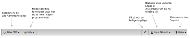 Vi bygger om lite, moderniserar och effektiviserar admingränssnittet i Atlas. Så snart du loggat in kommer du att ha en ny Adminmeny längst ned på webbsidan.