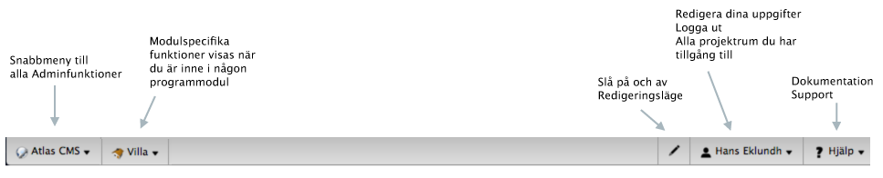 Den gör det enklare och smidigare att administrera och redigera webben och du behöver allt mer sällan gå in i den gamla adminvyn. Alla programmoduler du har access till når du direkt via navigeringen.
