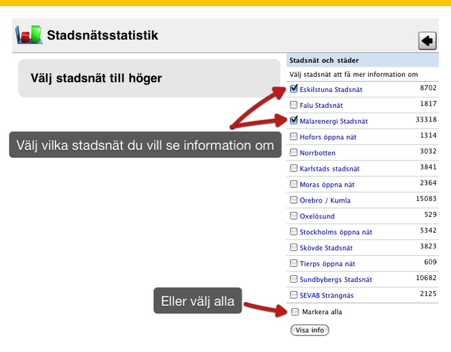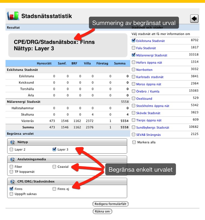 Man får en översikt om uppkopplingar fördelade på stad och fastighetstyp