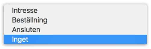 Nu finns möjligheten att välja "Inget" som status för en anmälan i Anslutamotorn. Det kan vara att man vill föra in kunduppgifter i förväg eller "pausa" en anmälan utan att radera den helt.