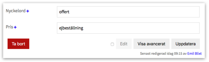 Denna artikel visas då överst i anmälningsformuläret för alla adresser med nyckelord offert.