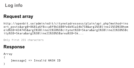 På sistone har vi fått in en hel del supportärenden vad gäller API:erna och när vi felsöker API:erna så kollar vi i vår API-log, men det känns dumt att den loggen ska vara tillgänglig enbart för oss, så därför har vi nu implementerat en ny funktion som ni hittar i API-rättigheter modulen under AdminAnvändareAPI-rättigheterFunktionLog och där ser ni de senaste API-transaktionerna (vi sparar upp till en månad innan dom tas bort)