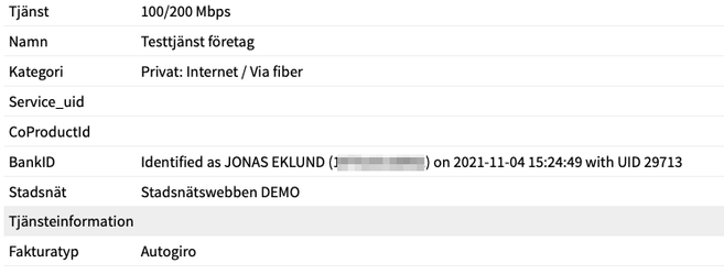 Om det finns anledning för Tjänsteleverantör att verifiera en identifiering så får dom kontakta Stadsnätet som berörs med hjälp av det UID som anges i beställningen som i sin tur får kontakta oss som kan ta fram verifieringsdata.Lansering