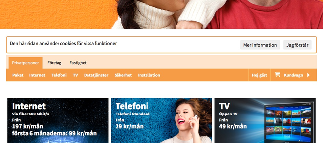 Den här är lite aggressivare, om ni väljer den här, så sätter vi ingen cookie utan att besökaren har godkänt det. Notera dock att för de sidor som använder cookies så måste vi stoppa helt och visa den här informationen, som PTS gör. Du kan inte använda sidan alls förrän du har godkänt.Till skillnad från PTS så visar vi inte detta på sidor som inte sätter cookies, så startsidan och Cookie information-sidan kan visas utan problem (ironiskt att informationen om cookies som PTS länkar till i sin motsvarande blänkare inte kan läsas utan att man godkänt cookies).