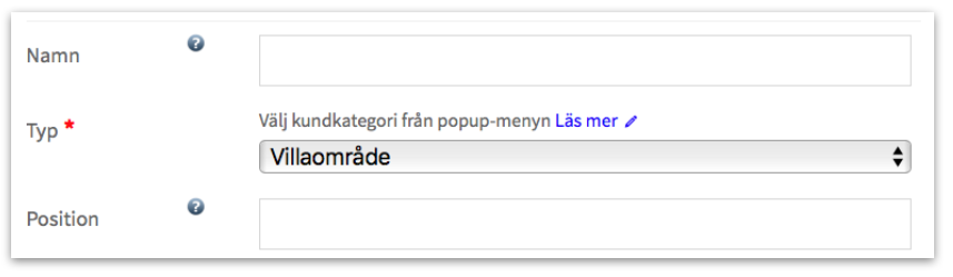 I formuläret anger du områdets namn i första fältet, skrolla sen ner och Spara. Övriga fält i formuläret kan du läsa om här: