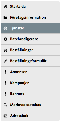 - Befintliga tjänster Klicka på tjänst för att redigera