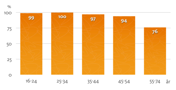 Utbredningen av Internet sker på alla ledder. Allt fler använder nätet, unga som gamla. 93% av alla mellan 16-74 år har tillgång till Internet hemma och 90% använder Internet dagligen. Bandbredden ökar stadigt i landet.