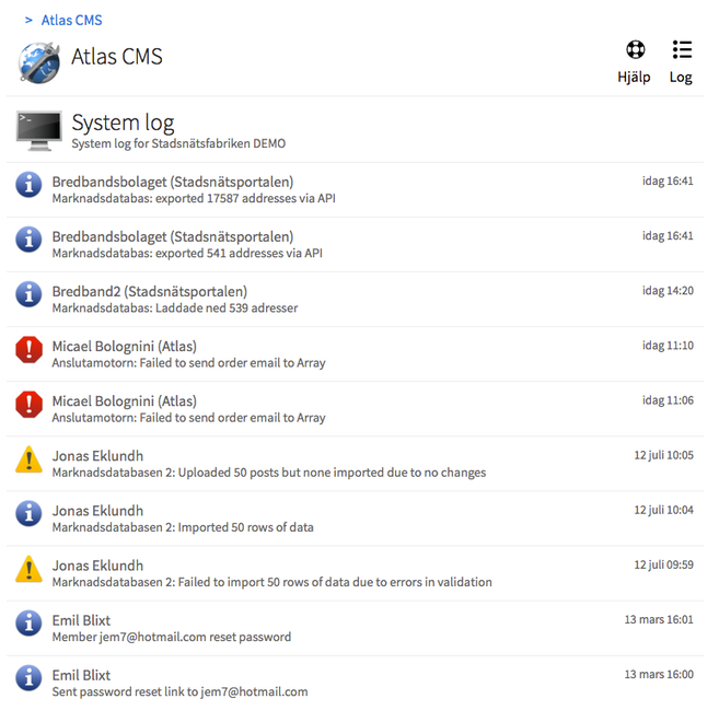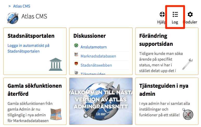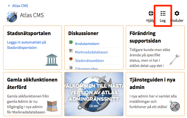 En efterfrågad funktion i Atlas är en loggfunktion för olika typer av händelser som sker i systemet, vilket nu finns tillgänglig