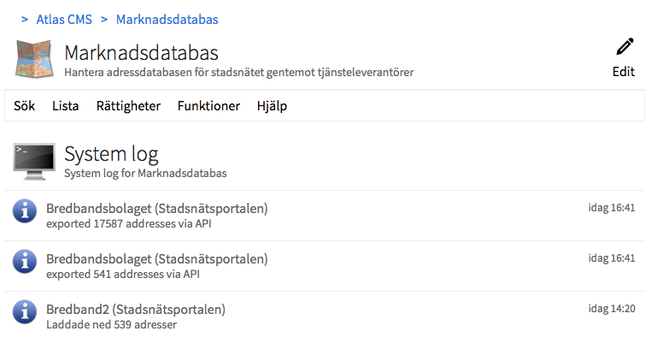 I Marknadsdatabasen ser ni till exempel när en tjänsteleverantör senast laddade ned era adresser, både via manuellt och via API.