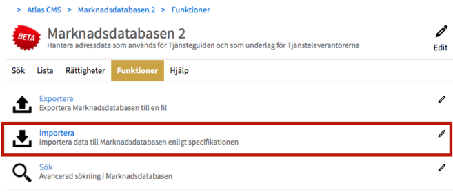 I testperioden så rekommenderar vi att ni exporterar ut, och sedan väljer ett mindre utsnitt att jobba med och testa att importera i MdB2, som ni hittar under AdminMarknadsdatabasen 2Funktioner.Hur länge pågår testperioden?